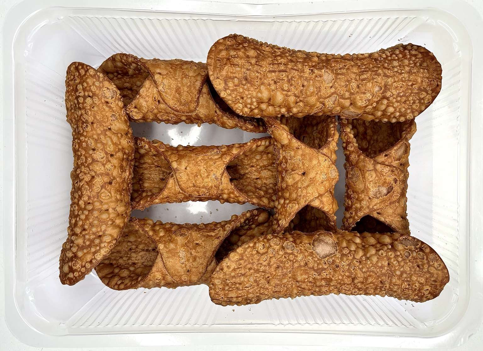 Arrivano vuoti, pronti da farcire con ricotta di pecora, crema al pistacchio, cioccolato o la tua fantasia. Il formato grande esalta la croccantezza perfetta della scorza, mantenendo tutta la sua struttura anche dopo la farcitura.